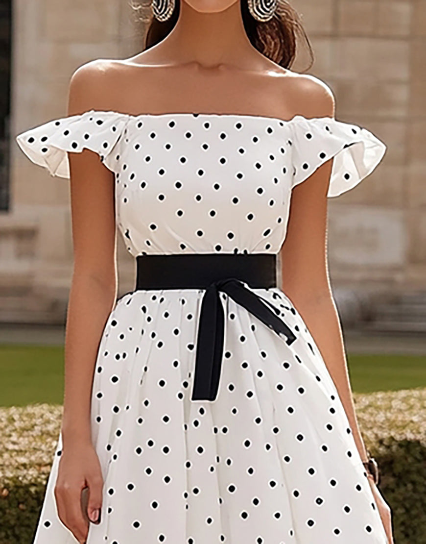 Off the Shoulder A Line White Wedding Guest Dress with Sash