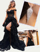 A-Line Black Off The Shoulder Lace Applique Slit Prom Dress with Accessories Set