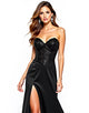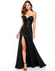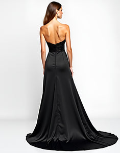 Black A-Line Sweetheart Neck Appliqued Split Black Tie Wedding Guest Dress