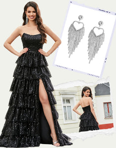 | Embellishment: | Split, Glitter, Cascading Ruffles |