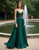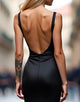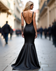 Black Mermaid Spaghetti Straps V-Neck Satin Sweep Train Black Tie Dress