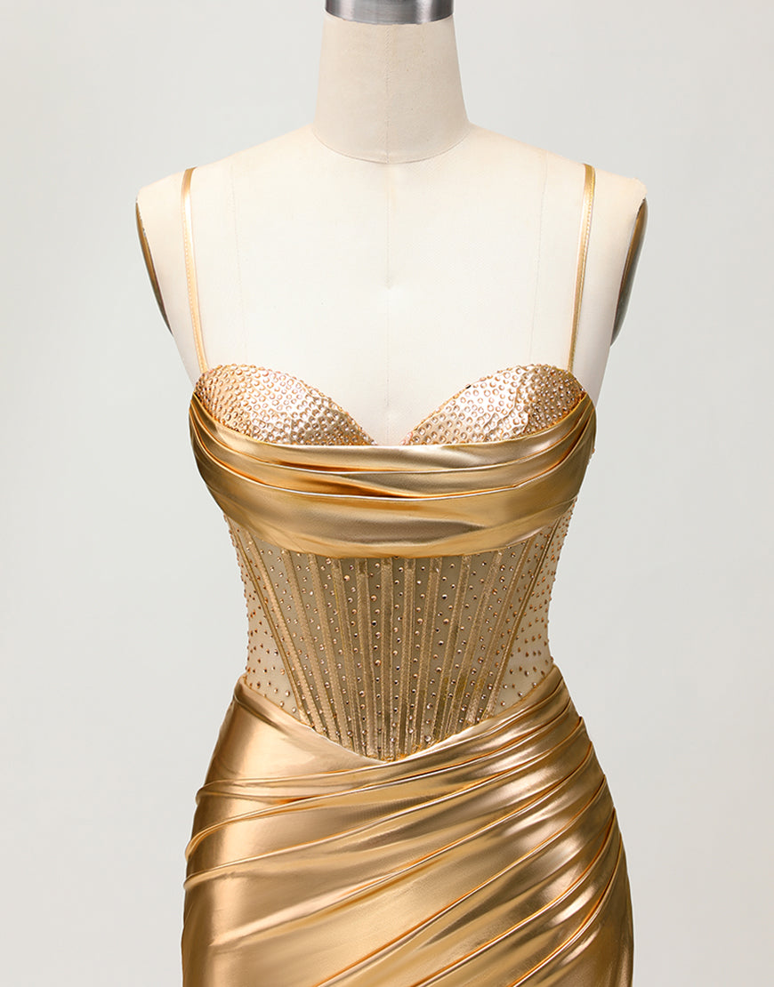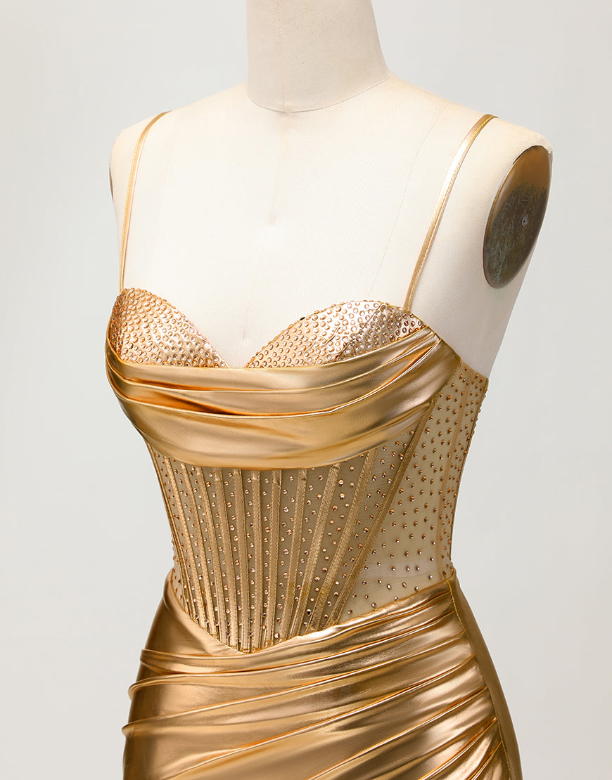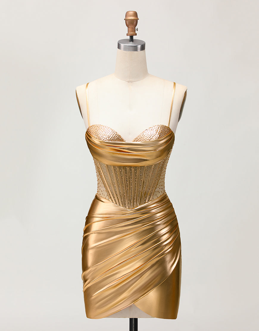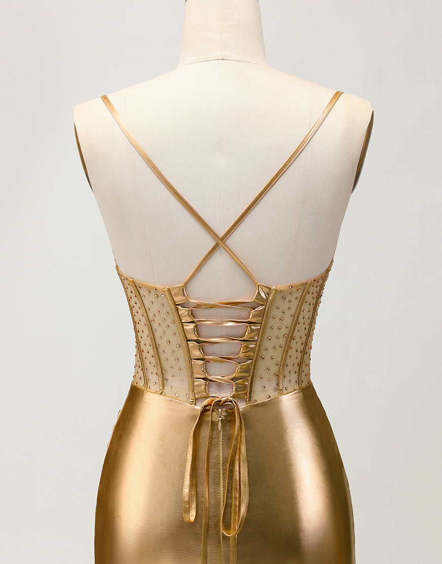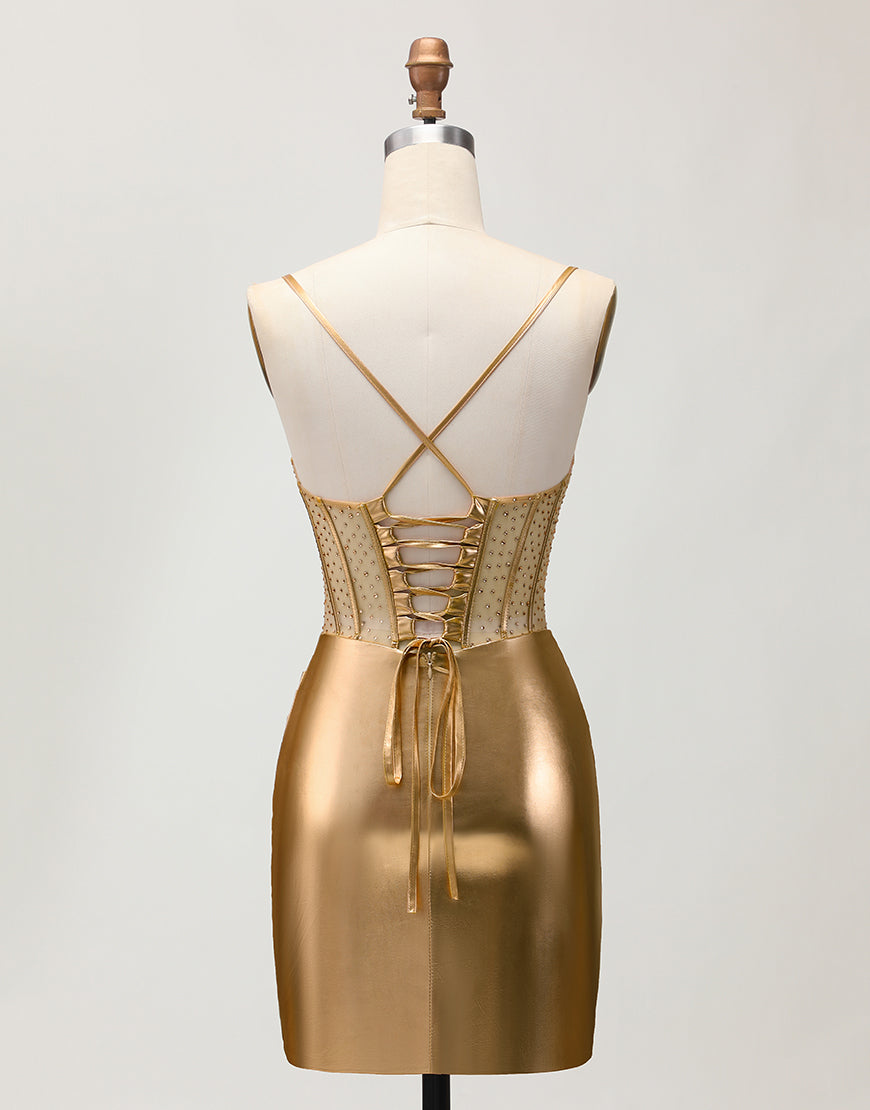 Bodycon Corset Beaded Golden Homecoming Dress with Lace-up Back
