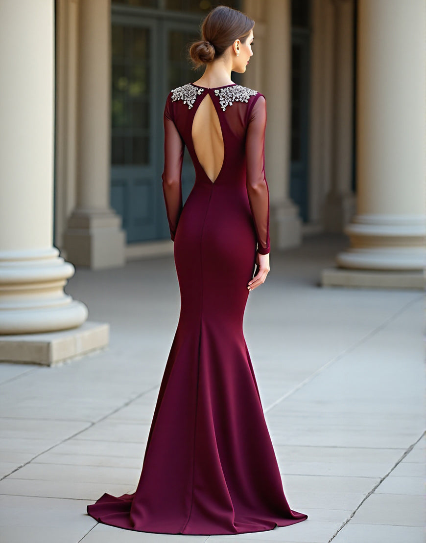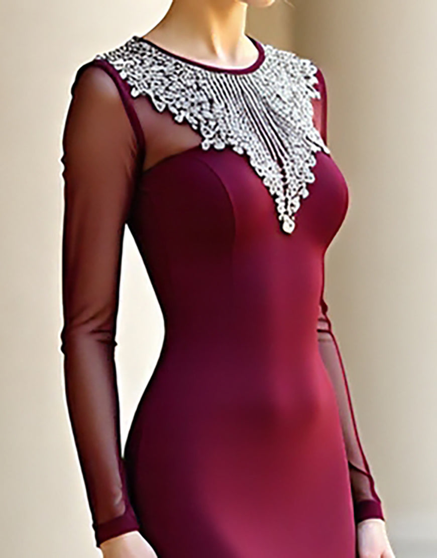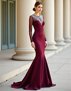 Design: Elevate your style with our stunning Burgundy Mermaid Crewneck Applique Formal Dress. Featuring a flattering mermaid silhouette, elegant crew neckline, and delicate lace applique, this dress is perfect for any formal occasion. The sweep train adds a touch of drama while the tulle fabric provides a romantic and feminine feel. Make a statement in this show-stopping dress.