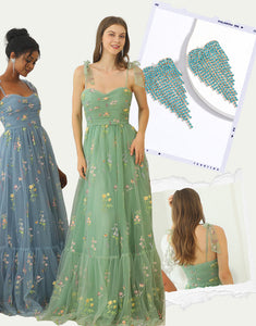 Design: This Green Spaghetti A-Line Print Ruched Prom Dress with Accessories Set is a must-have with its stunning green color, A-line silhouette, and strappy sweetheart neckline. The sleeveless and backless design adds a touch of allure, while the floor-length tulle skirt creates a flowy and elegant look. The print and ruched details add texture and dimension to the dress. Complete with a set of accessories, this dress is perfect for a prom night or any special occasion.
