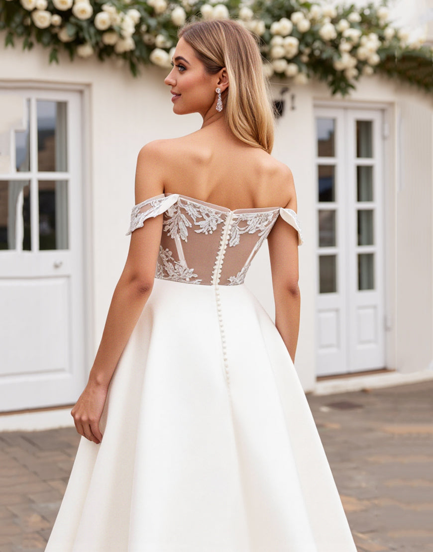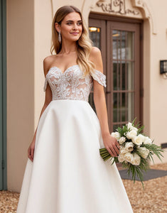 Ivory A Line Off The Shoulder Lace Wedding Dress