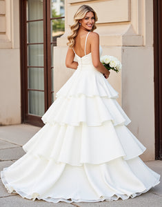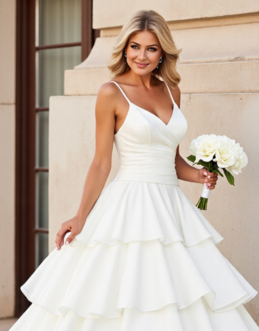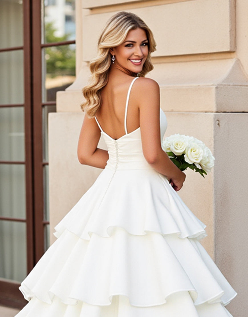 Ivory A Line Spaghetti Straps Tiered Wedding Dress