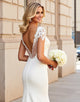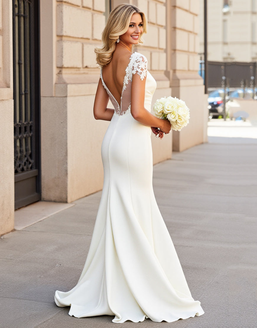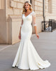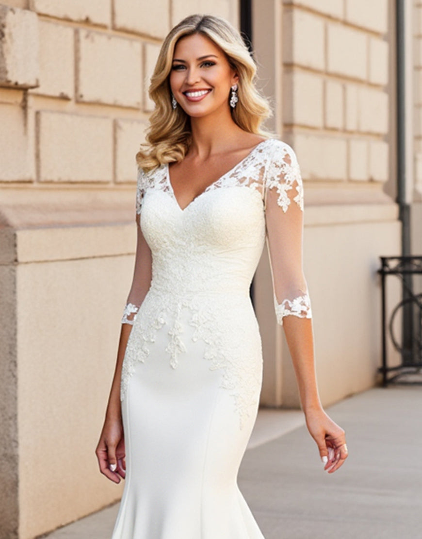 Ivory Lace V Neck Mermaid Wedding Dress with Half Sleeves