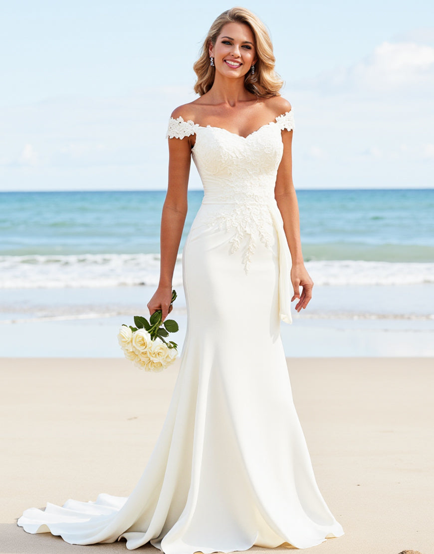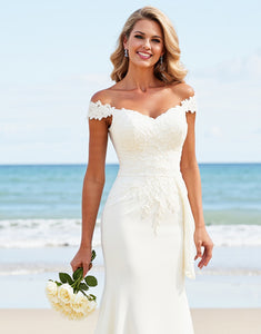Lace Ivory Stretch Satin Mermaid Off the Shoulder Wedding Dress