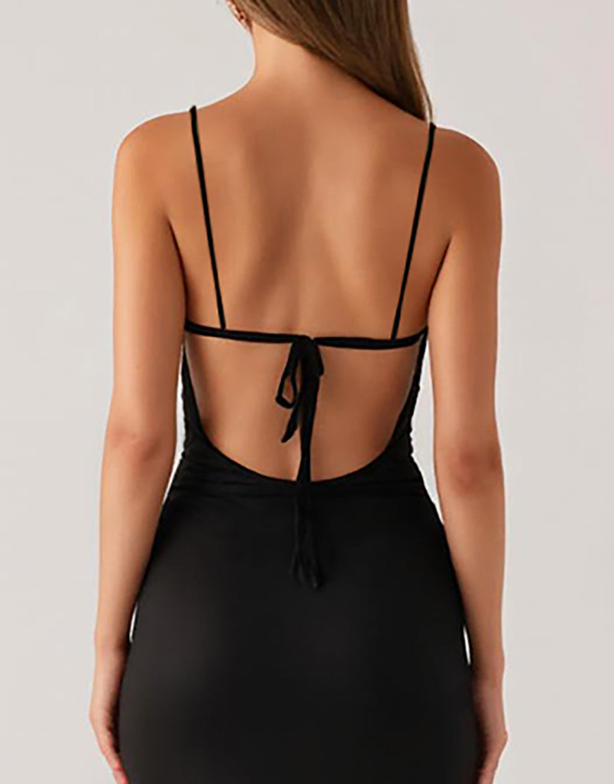 Mermaid Spaghetti Straps Backless Black Tie Dress