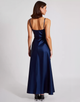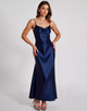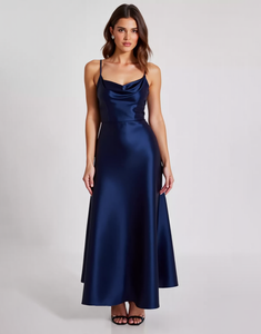 Navy A Line Spaghetti Straps Satin Formal Dress