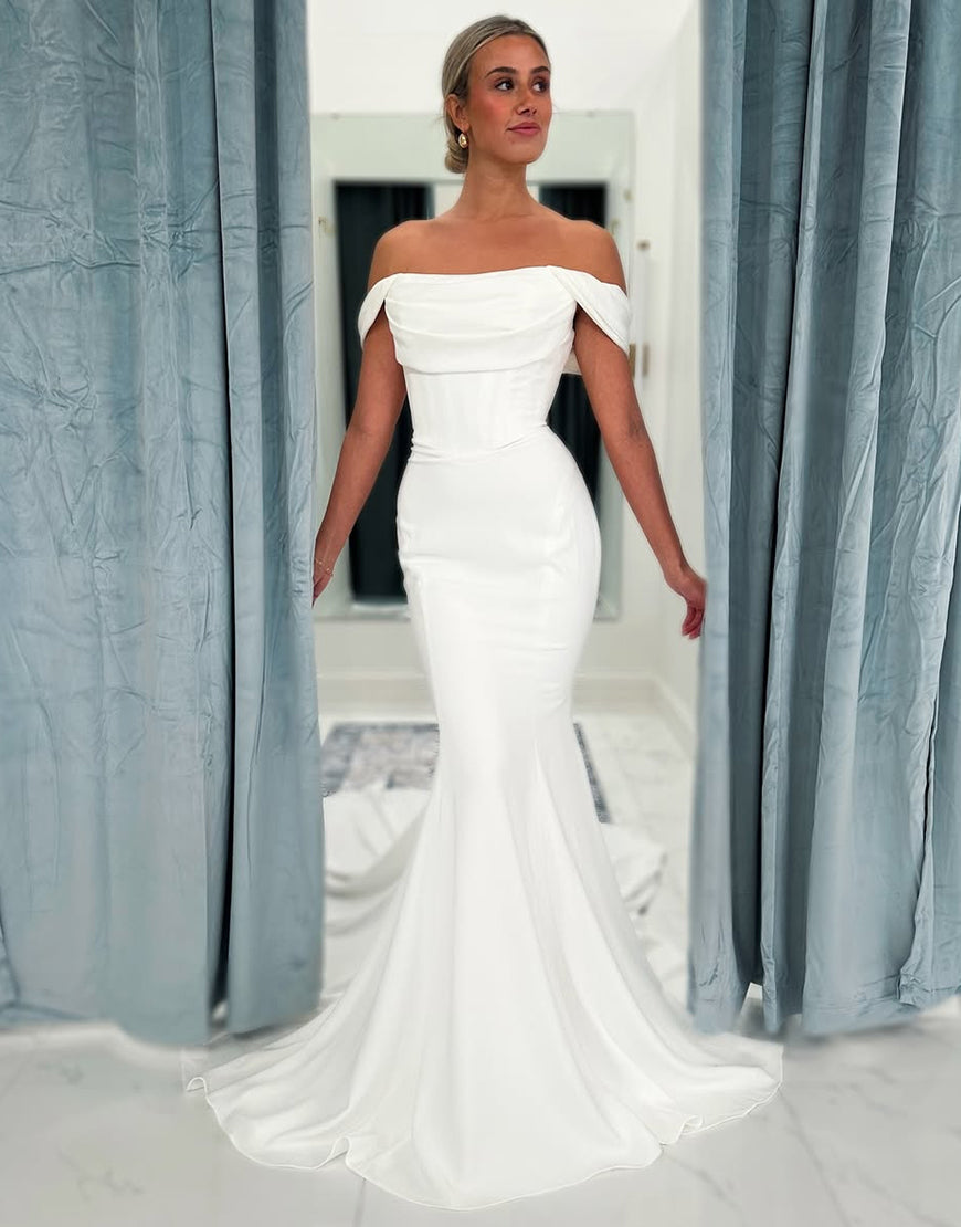 Off The Shoulder Mermaid Satin White Wedding Dress