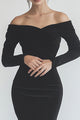 Off The Shoulder Sheath Black Tie Dress with Long Sleeves