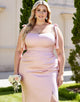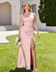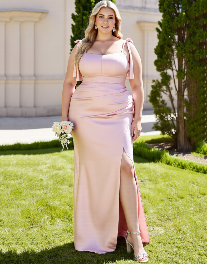 Plus Size Sheath Candy Pink Simple Bridesmaid Dress with Slit