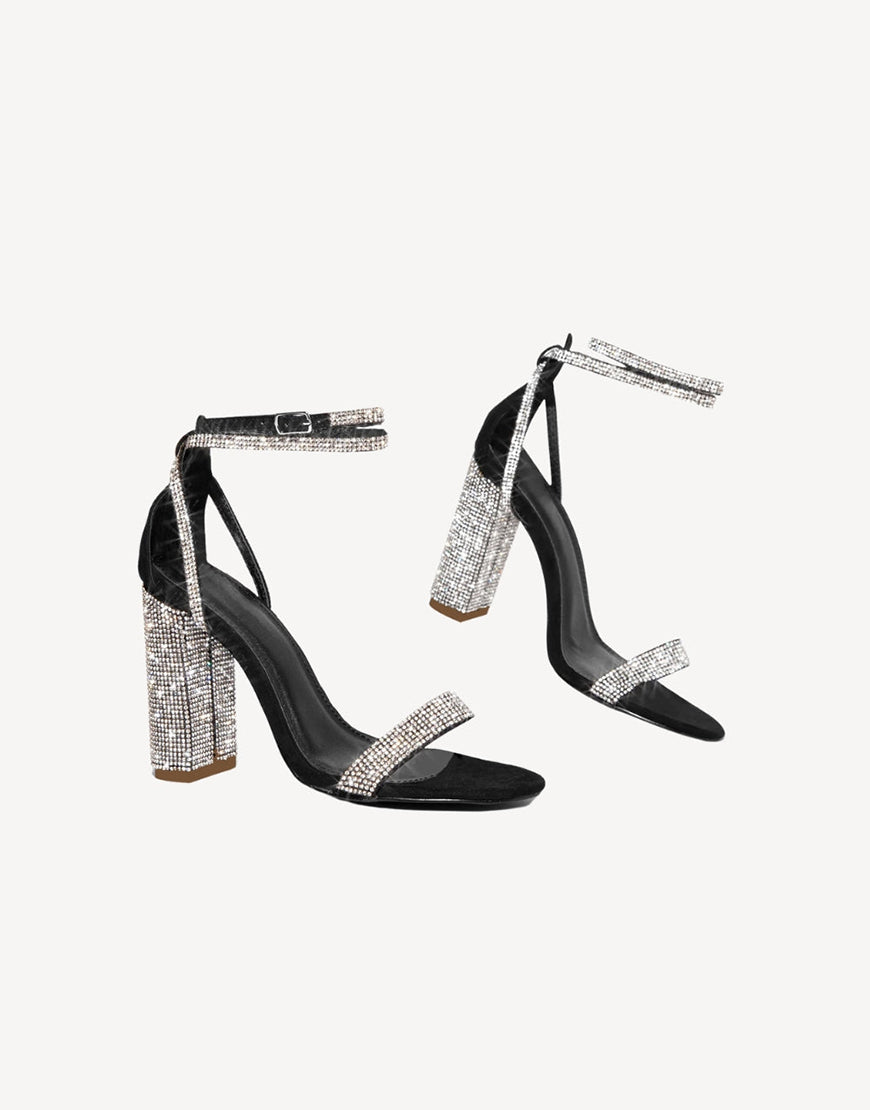 Rhinestone Chunky Heel One Buckle Sexy High Heel Sandals