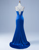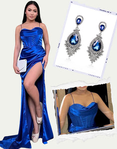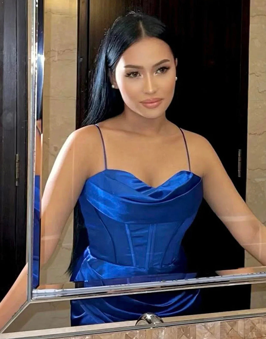 Design: Expertly crafted and scientifically designed, this Royal Blue Mermaid Spaghetti Sweetheart Ruched Slit Prom Dress offers a flawless fit. The elegant mermaid silhouette and sweetheart neckline accentuate your natural curves, while the thigh-high slit and sweep train add a touch of drama. Complete the look with the included accessories set for a truly show-stopping ensemble.