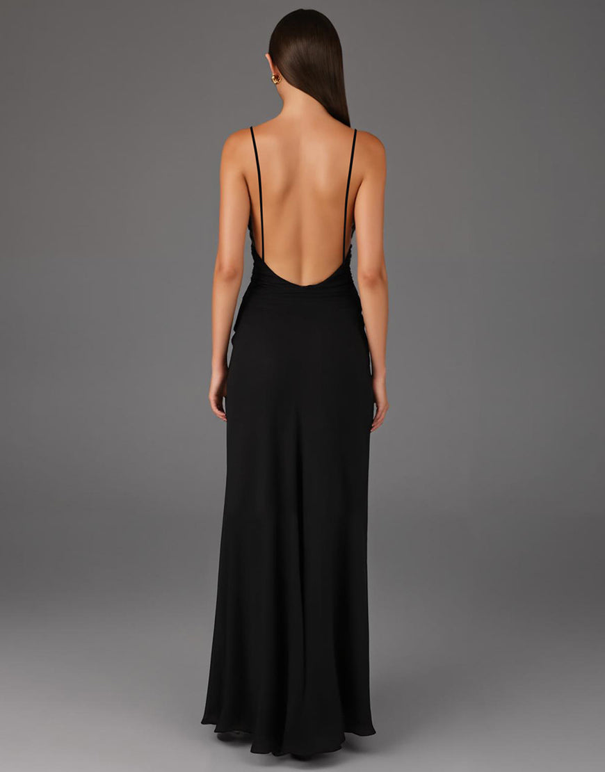Sheath Spaghetti Straps Black Tie Dress