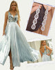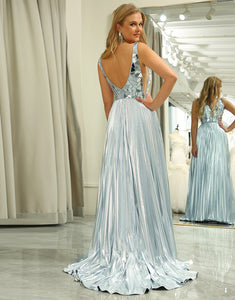 Design: This stunning Silver A-Line Sequin V-Neck Prom Dress is the perfect choice for any special occasion. The sequined design and V-neck accentuate your figure, while the slit adds a touch of elegance. The dress comes with a set of accessories, making it a complete and convenient choice for your next event.