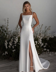 Simple Ivory Satin Sheath Wedding Dress with Slit