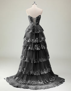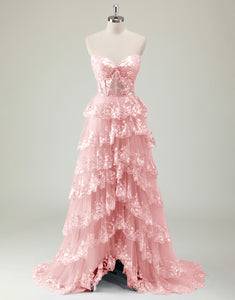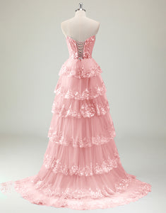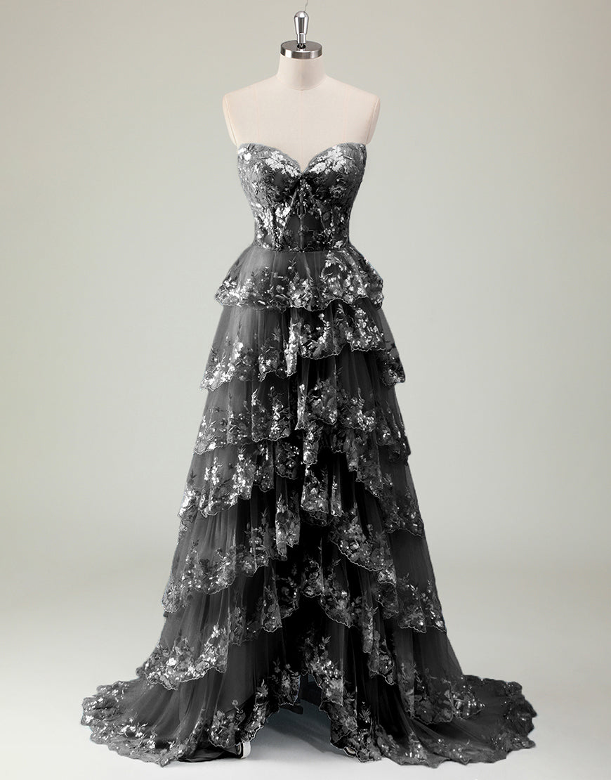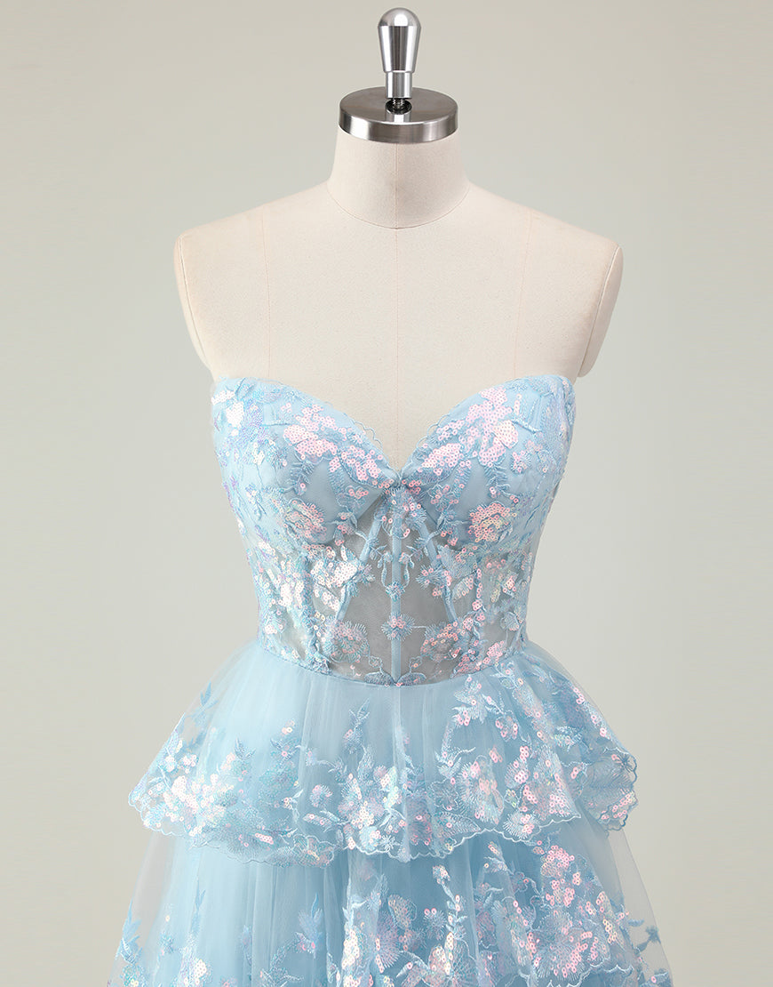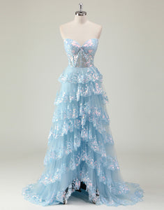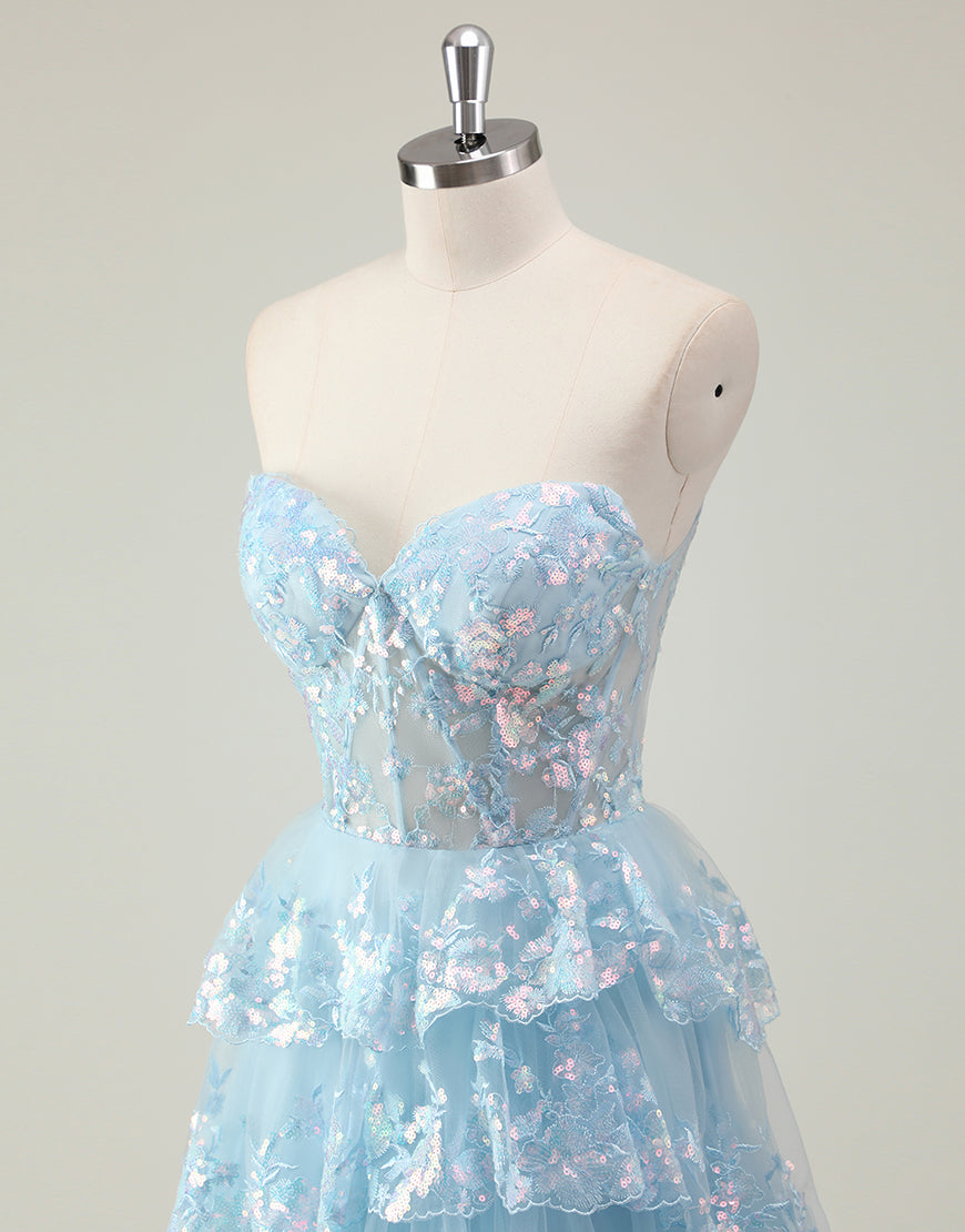 Design: Shine like a princess in this Sparkly Blue A-Line Sweetheart Sequins Tulle Prom Dress. The delicate applique and ruffled details add a touch of elegance while the slit adds a modern twist. Perfect for proms, weddings, and special occasions.