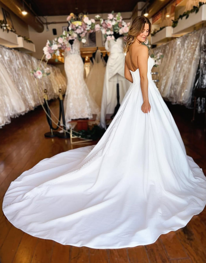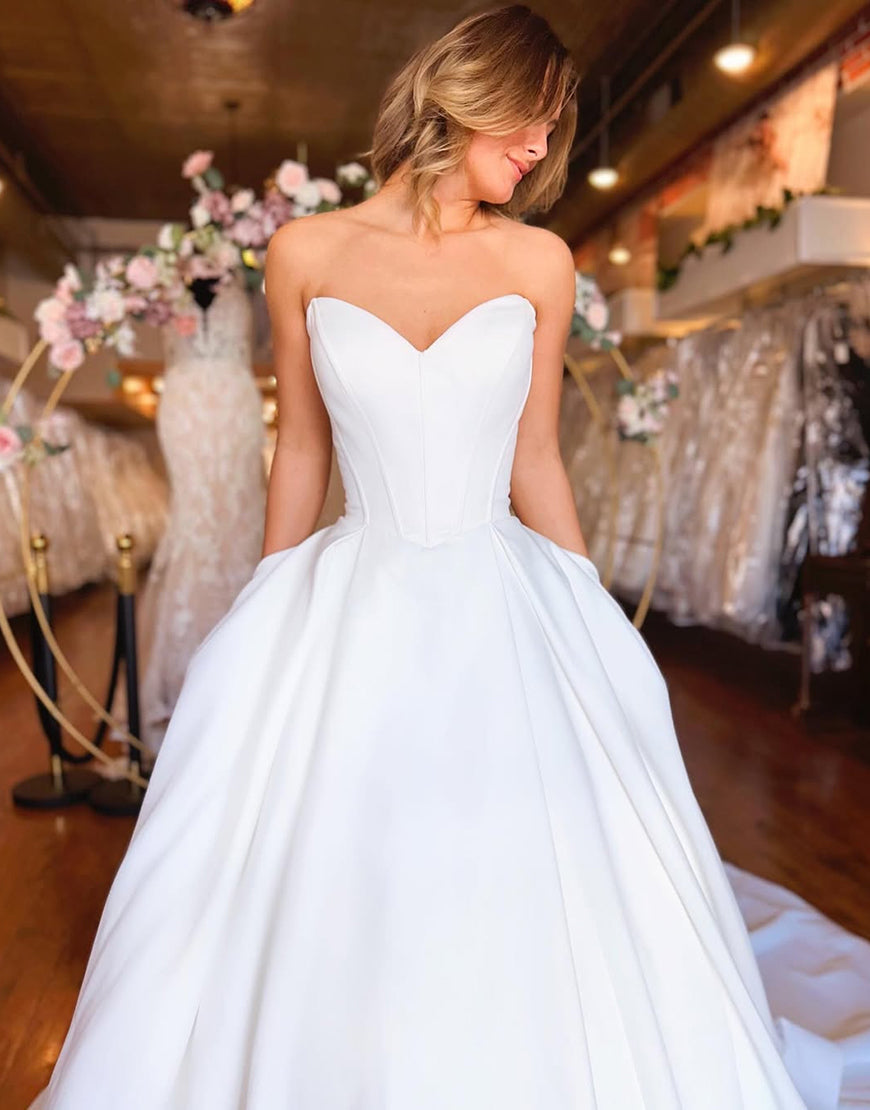 Strapless A Line Satin Wedding Dress