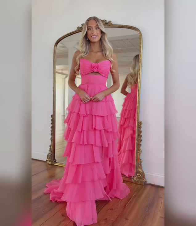 Design: This elegant Yellow Sweetheart Flower Neck Chiffon A-Line Prom Dress features a feminine sweetheart neckline and delicate flower detailing, creating a stunning look. With a flattering A-line silhouette and tiered chiffon skirt, this dress is perfect for any formal occasion. The sleeveless and backless design adds a touch of allure, while the floor-length hem adds a touch of sophistication. Stand out in this beautiful dress and make a statement at your next event.